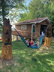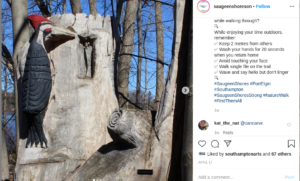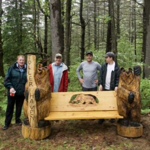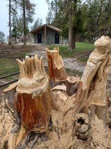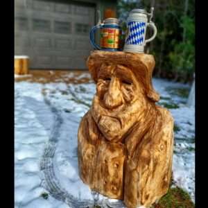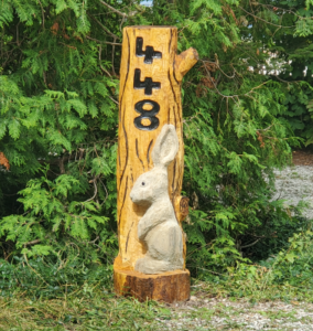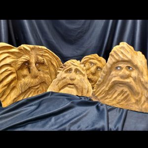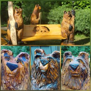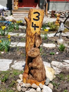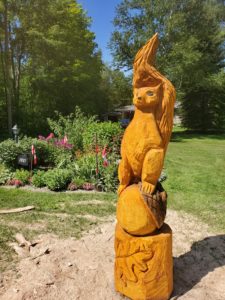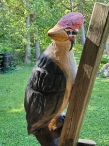 It’s spring time and the birds are here! This 7 foot carving in a 20″ diameter white pine log shows all 4 family members represented
