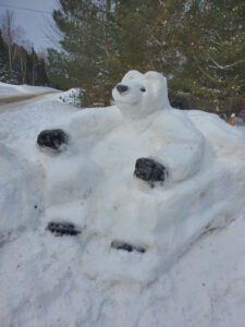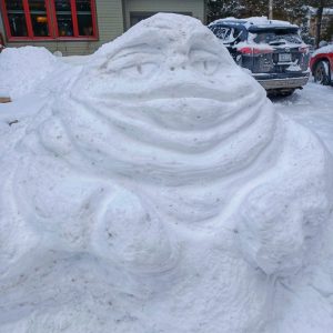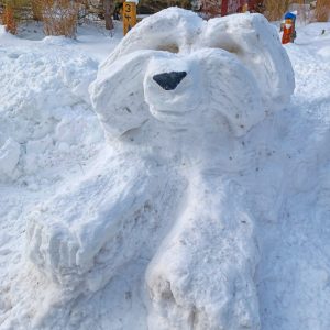It’s winter, gotta carve snow. After the last melt and snow dump, carved a big ‘little dog’.