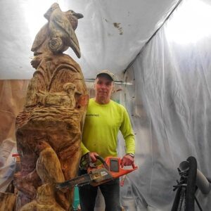 Even chainsaw carvers have to dabble in other art forms. This month of October, for the Saugeen Shores Scarecrow event that will raise funds for