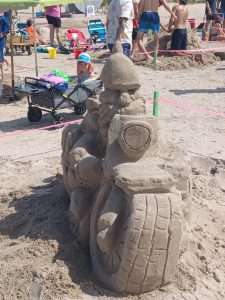Participated in two sand sculpture events this summer; Port Elgin and Sauble Beach. Lots of energy moving easily a ton of sand each time for