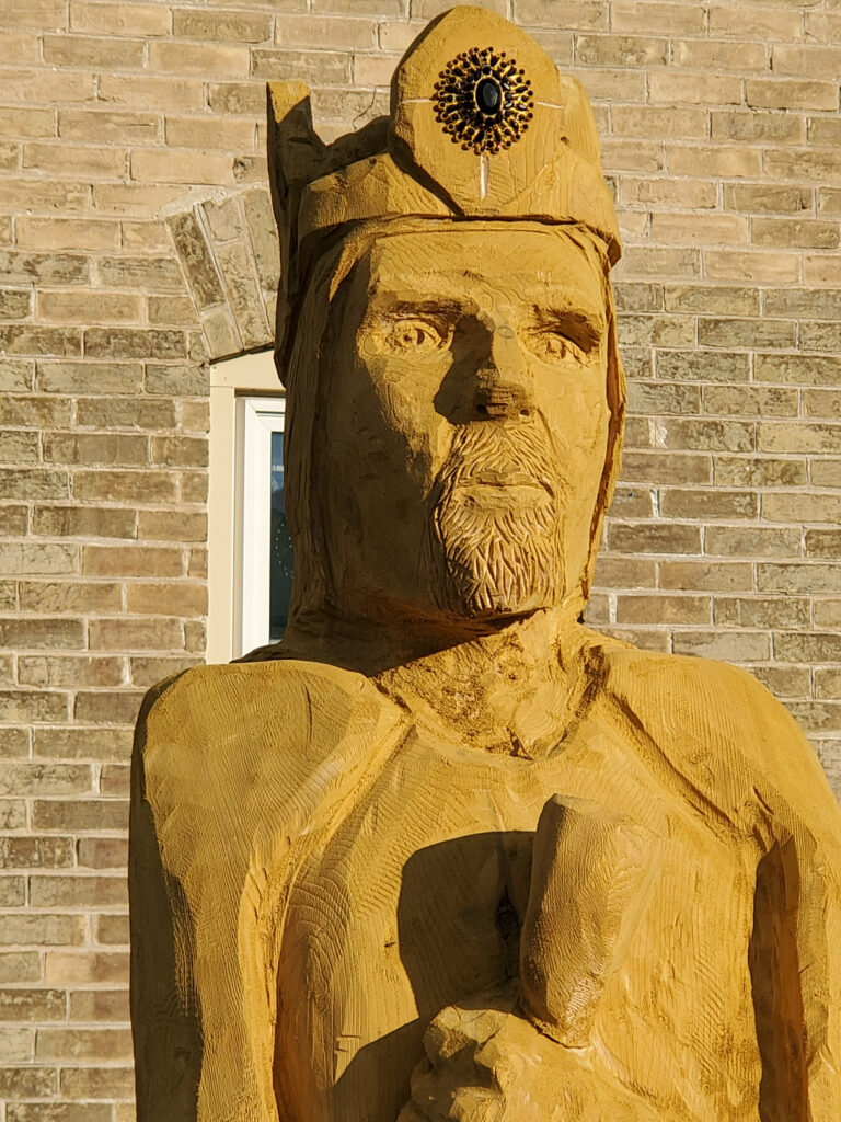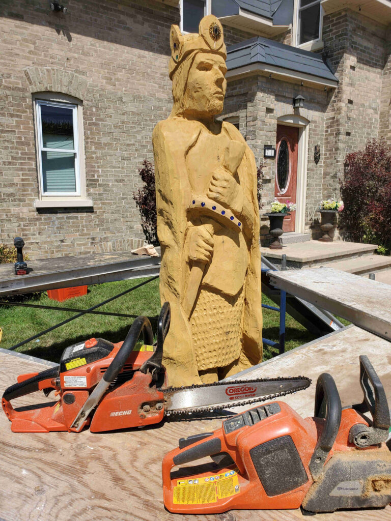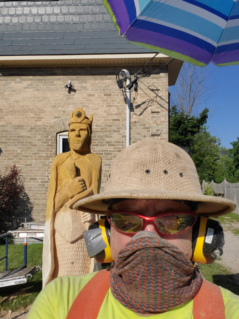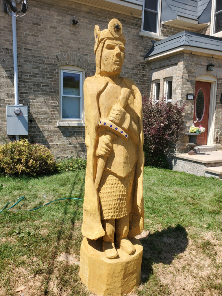 This new Aragorn King is carved in a local cedar log and has appropriate King bling for all to admire.