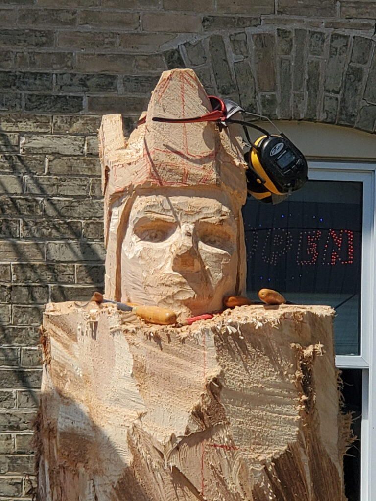 The old King of Tiverton, in front of the King’s Pearl Pub & Eatery, is being retired for my newly carved King.