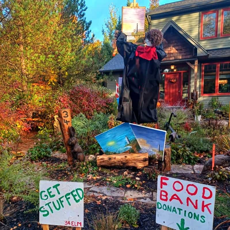 This year the Artist in the Wind, Bob Ross will be at our house to help raise funds for the foodbank between October 20 and October 31. It was challenging constructing Bob for this event!