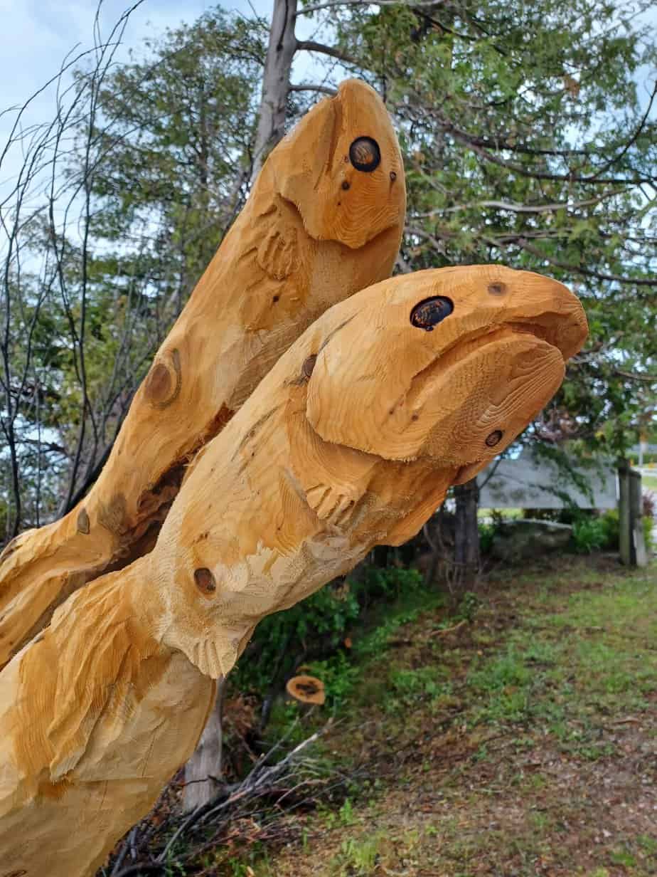 Custom carvings can be made at my studio or sculptures made from your standing stumps at your place